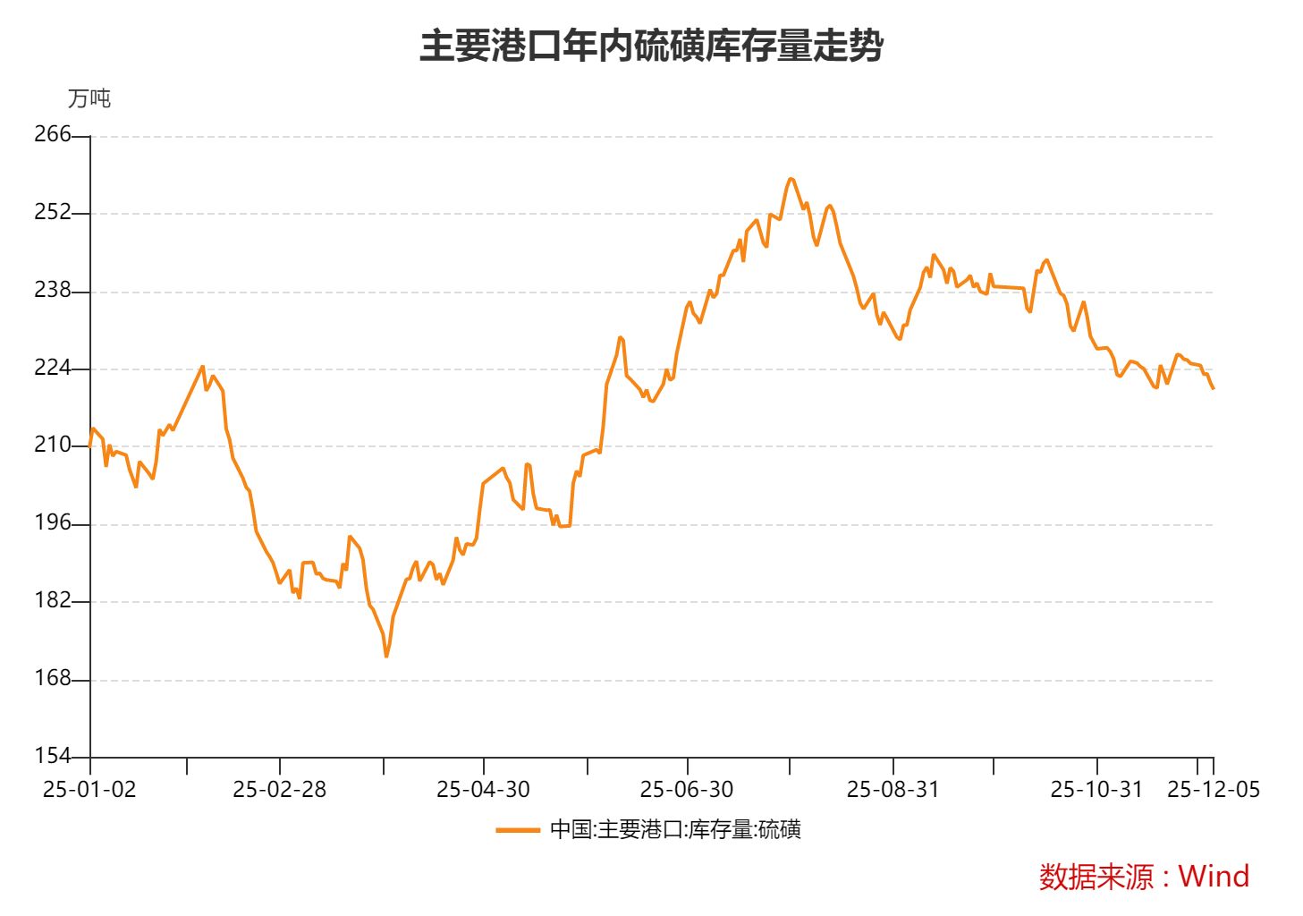 生意社数据显示,截至12月5日,中国硫磺港口总库存高达220.28万吨,其中防城港59万吨、镇江港84万吨,理论上供应看似充足。