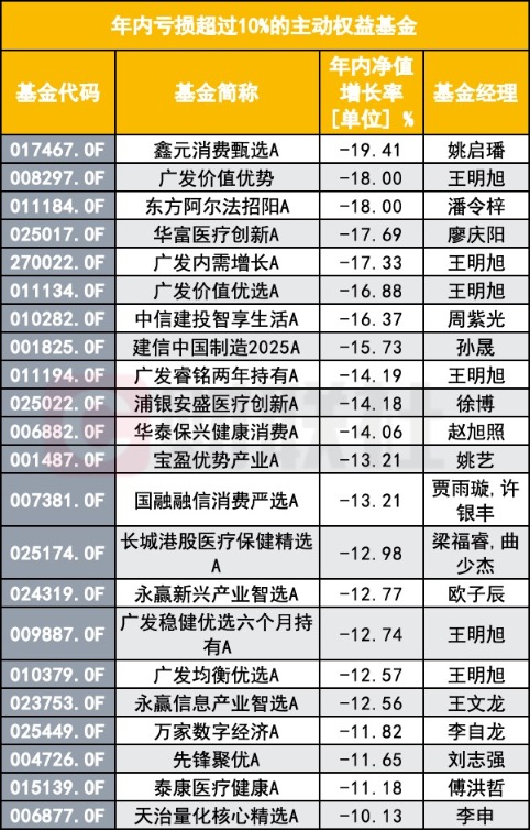 医药相关主题在尾部名单中也并不罕见。如华富医疗创新、浦银安盛医疗创新、长城港股医疗保健精选等产品,均在年内录得两位数的负收益,其中部分产品还属于年内成立的新基金。
