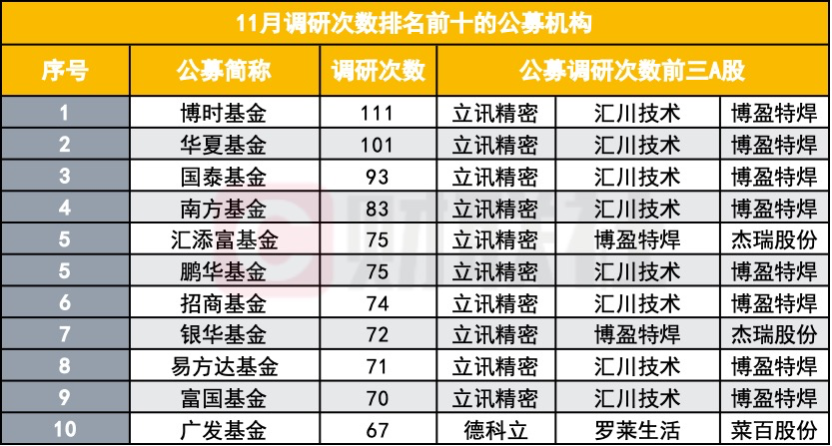 11月公募扎堆调研 都在看哪些股?博时与华夏高频出动
