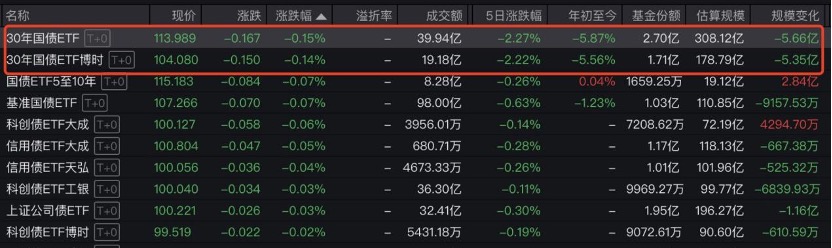 从12月5日国债收益率来看,超长期国债依然上行,场内两只30年国债ETF依然跌幅居前,不过较前一个交易日跌幅明显收窄。资金流向上来看,2只ETF近5日净流出近11亿元,近10日净流出超42亿元。