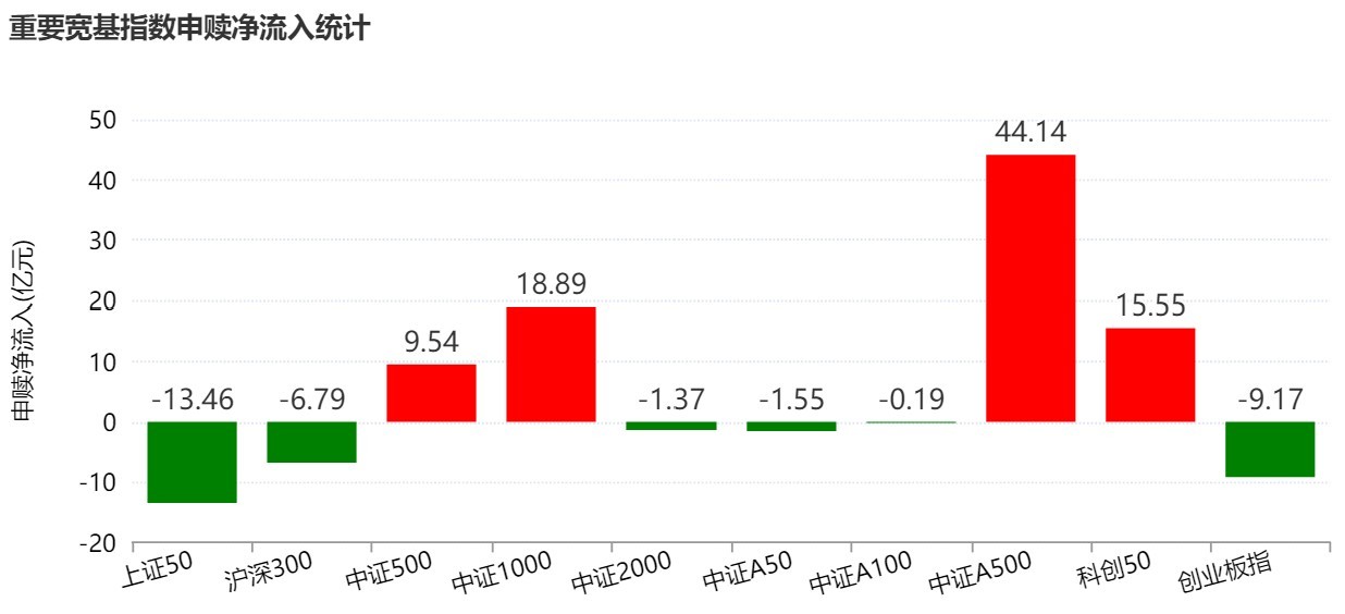 细分来看,主要宽基指数整体资金申赎统计显示,本周中证A500净流入44.14亿元,上证50净流出13.46亿元。