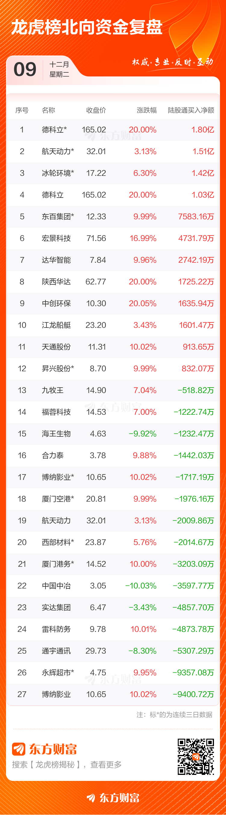 12月9日共有63只个股上榜龙虎榜,总上榜成交额188.30亿元。上榜个股中净买入额最高的是,金额为4.67亿元。